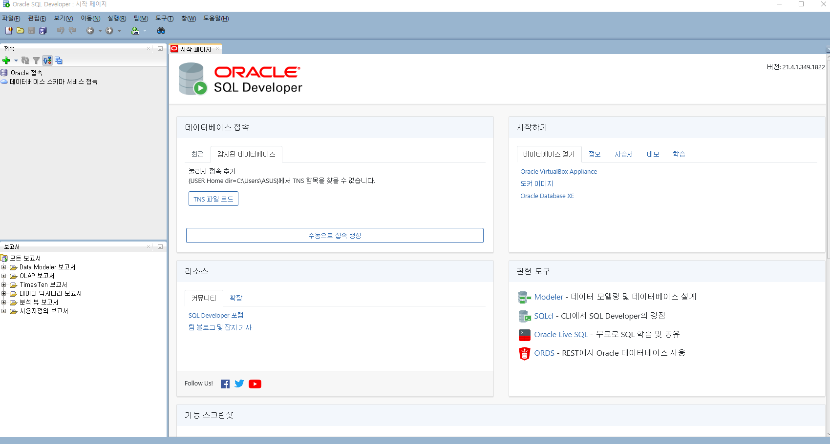 - 원하는 위치에 압축 풀고 sqldeveloper.exe 실행