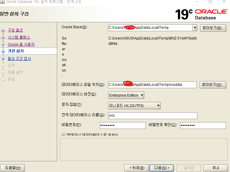 - 설치 진행 - 비밀번호 설정한 것 잊어버리지 않기