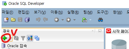 - Ocale SQL Developer 실행 후 + 버튼(DB 새로만들기)으로 접속 정보 입력