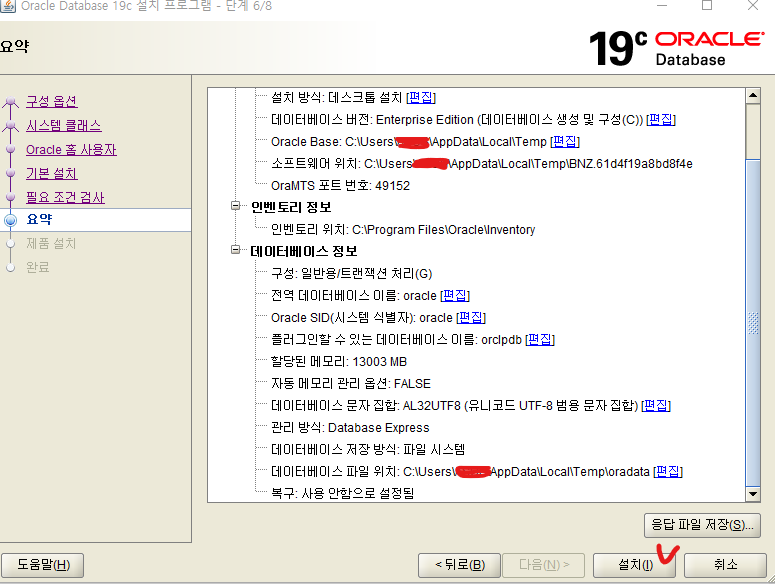 Oracle 입력한 ADMIN 비밀번호는 Oracle 권장 표준을 따르지 않습니다. (오류)