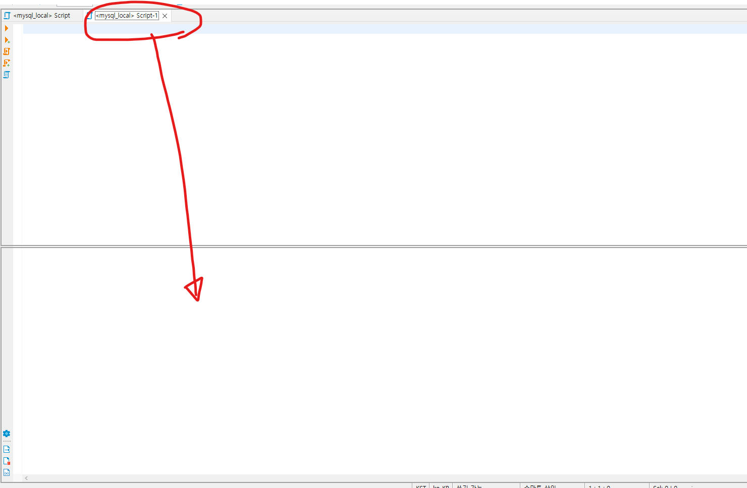 가로로 보고싶다면 2번 Script 탭을 잡고 아래로 옮기면 가상선이 생긴다.
